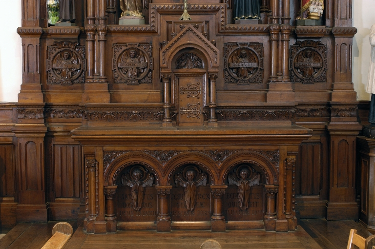 Ensemble de l'autel du Sacré Coeur : autel, tabernacle, gradin d'autel, retable, 2 degrés d'autel,