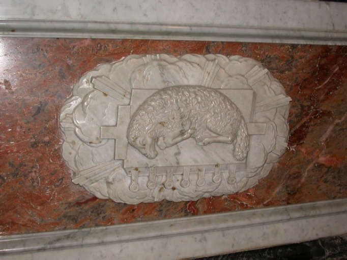 Maître-autel, détail du médaillon central : Agneau aux sept sceauxImmatriculation