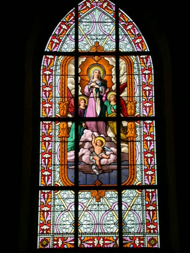 Ensemble de 4 verrières à personnages des baies 7, 9, 11, 13 : Annonciation, Adoration des mages, Présentation au temple, Assomption,
