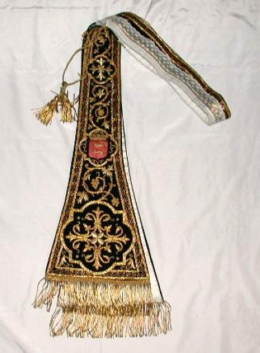 Ornement noir 1 : chasuble, bourse de corporal, étole, manipule, voile de calice, étole pastorale,