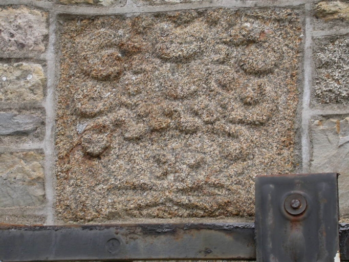 Pierre sculptée remployée sur le bâtimentImmatriculation