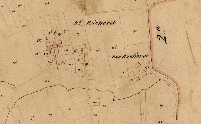 Partie ouest de l'écart sur le premier cadastre de la communeImmatriculation