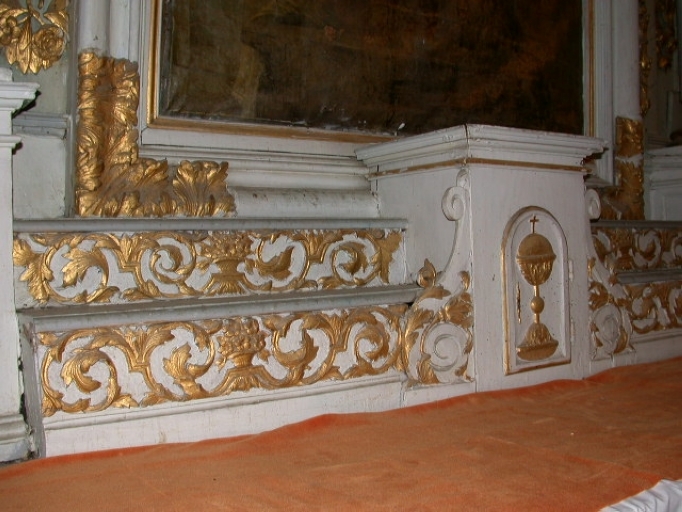 Ensemble de l'autel de la Vierge : autel, retable, tabernacle, 2 gradins d'autel et degré d'autel,