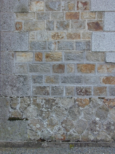 Soubassement en nid d'abeille, mur en granite équarriImmatriculation