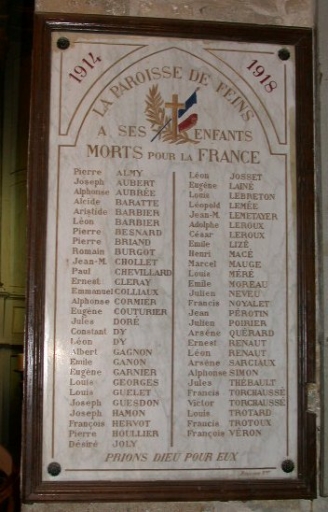 Tableau commémoratif des morts de la guerre 1914-1918,
