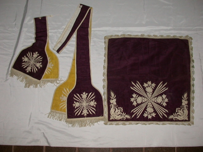 Ornement réversible : chasuble, étole, manipule, voile de calice,