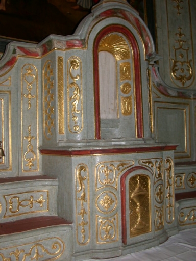 Ensemble du maître-autel : autel, tabernacle, 2 gradins d'autel, retable, degré d'autel,