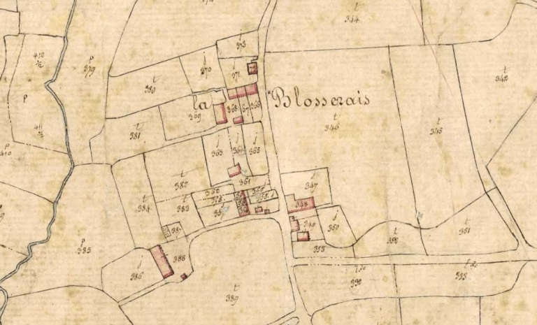 Vue de la ferme sur le cadastre de 1828 : parcelles 348 et 349Immatriculation