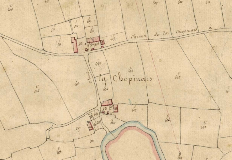 Vue de la ferme de La Chopinais sur le cadastre napoléonien de 1827Immatriculation