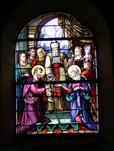 6 Verrières baies 1 à 8 : Saint Casimir ; Saint Julien ; Saint Pierre ; Education de la Vierge ; Mariage de la Vierge ; Baptême du Christ,