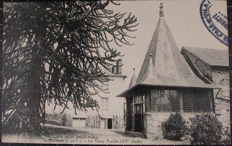 Extrémité de la chapelle auquel est adjointe un porche en pan de bois (remonté en 2020 au cimetière communal)Immatriculation