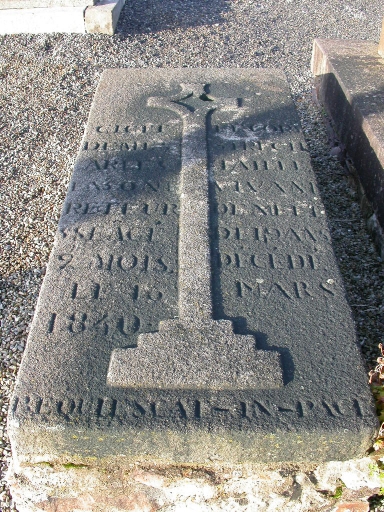 Tombe d'un recteur, 1840Immatriculation