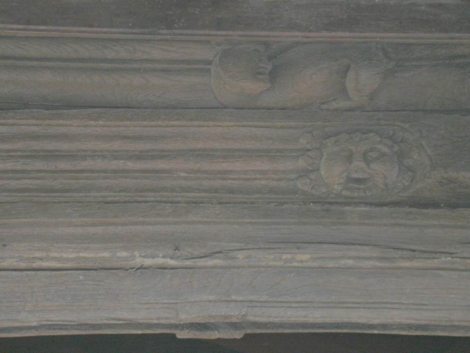 Décor porté sur une entretoise du porche (état de 2005).Immatriculation