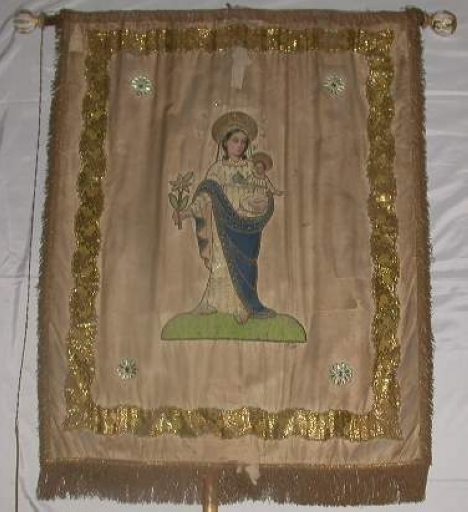 Bannière de procession : Christ en croix, Vierge à l'Enfant,