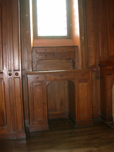 Meubles de sacristie : chasublier, chapier, armoires, bureau, lambris,