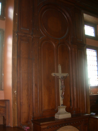 Meubles de sacristie : chasublier, chapier, armoires, bureau, lambris,