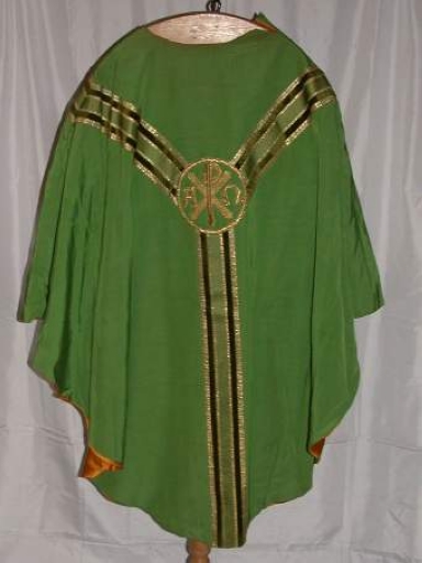 Ornement vert 1 : chasuble, voile de calice,
