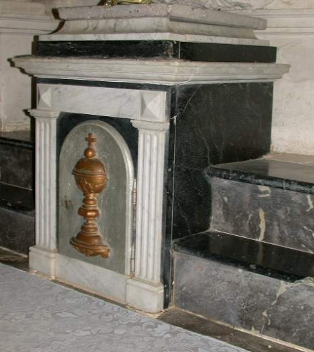 Ensemble de l'autel de sainte Anne et des archanges : autel, tabernacle, 2 gradins d'autel, retable,
