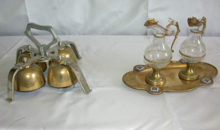 Sonnette liturgique et paire de Burettes avec leur plateauImmatriculation