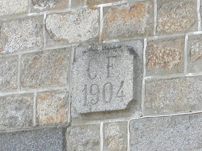 Inscription sur la façade : initiales et dateImmatriculation
