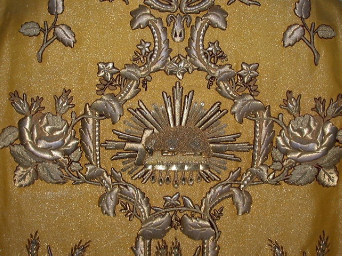 Ornement doré 2 : chasuble, bourse de corporal, étole, manipule, voile de calice,