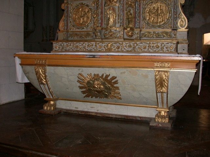 Maître-autel : retable, autel et tabernacle à dais d'exposition,