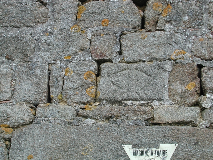 Elévation sud : détail d'un graffiti sur une pierreImmatriculation
