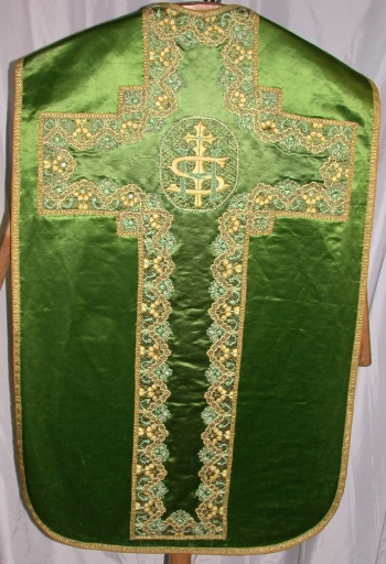 Ornement vert 2 : chasuble, bourse de corporal, étole, manipule, voile de calice,