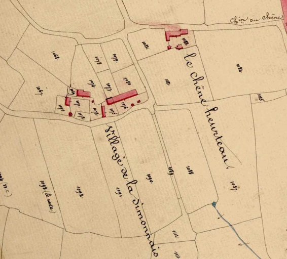 La Simonnais et le Chêne Heurteau sur le cadastre ancienImmatriculation