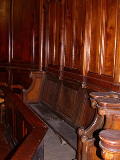 Décor de choeur : 2x4 stalles, 2 bancs de choeur, lambris de revêtement,