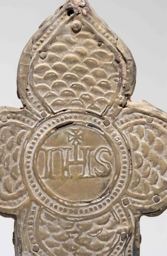 Croix de procession : avers, détail monogramme du ChristImmatriculation