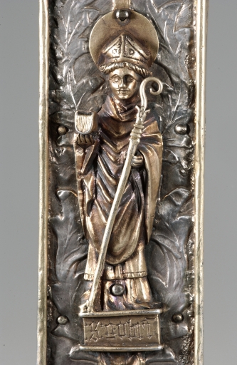 Croix de procession : revers, statuette de saint GobrienImmatriculation