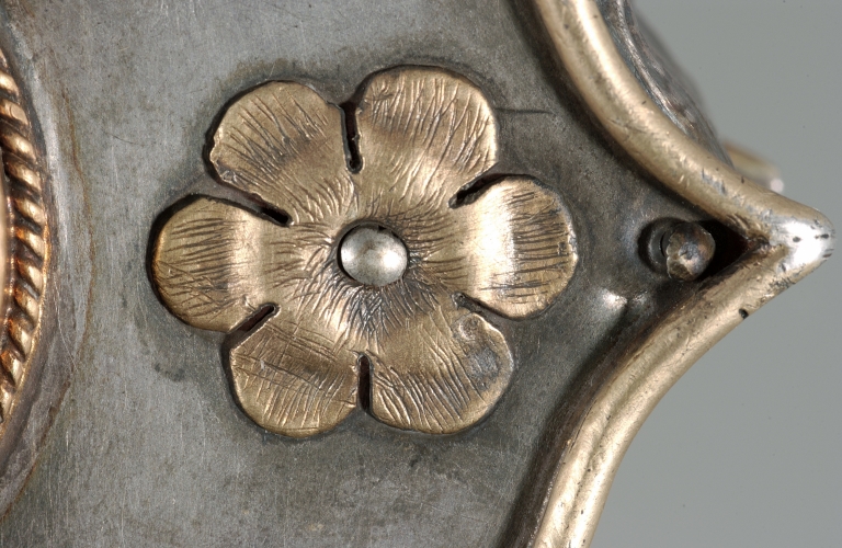 Croix de procession : détail de fleurette sur un fleuronImmatriculation