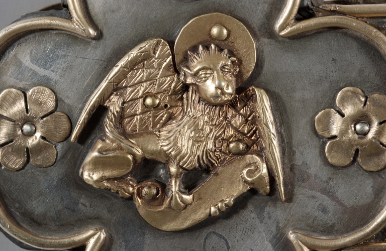 Croix de procession : médaillon au lion de saint MarcImmatriculation