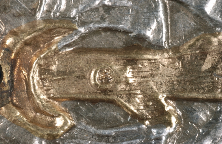 Croix de procession : détail poinçon (autre vue)Immatriculation