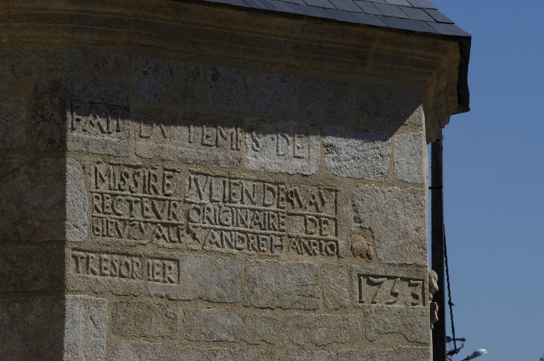 Chapelle sud, détail de l'inscription.Immatriculation