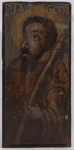 Clôture de choeur ; statues de la Vierge et de saint Jean au calvaire,