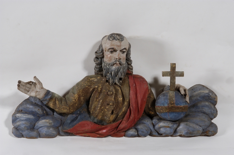 Détail du couronnement du retable majeur remployé sur le retable latéral nordImmatriculation