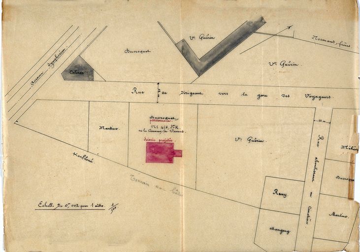 Projet d'implantation d'une scierie mécanique par Ducroquet en 1893 dans l'avenue Olivier de Clisson. AD Morbihan 5M 232.Immatriculation