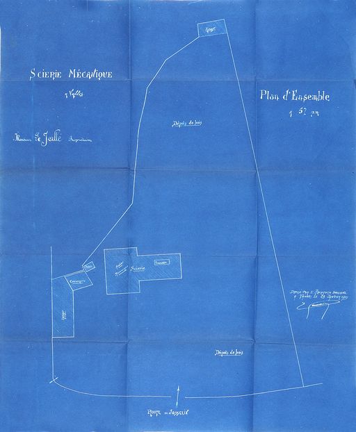 Etablissement d'une scierie mécanique route de Josselin par Le Jallé, 29 janvier 1919, plans par E. Gemain. AD Morbihan 5M232.Immatriculation