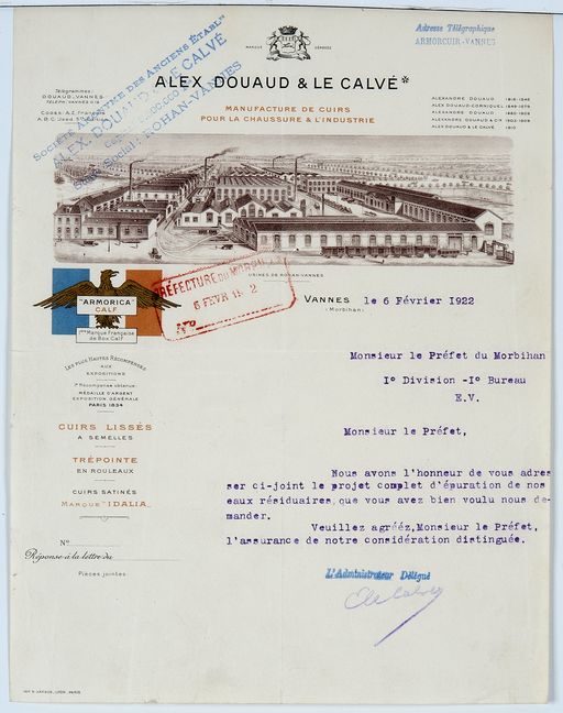 Papier à en tête de la tannerie de Rohan. AD Morbihan 5M 235.Immatriculation