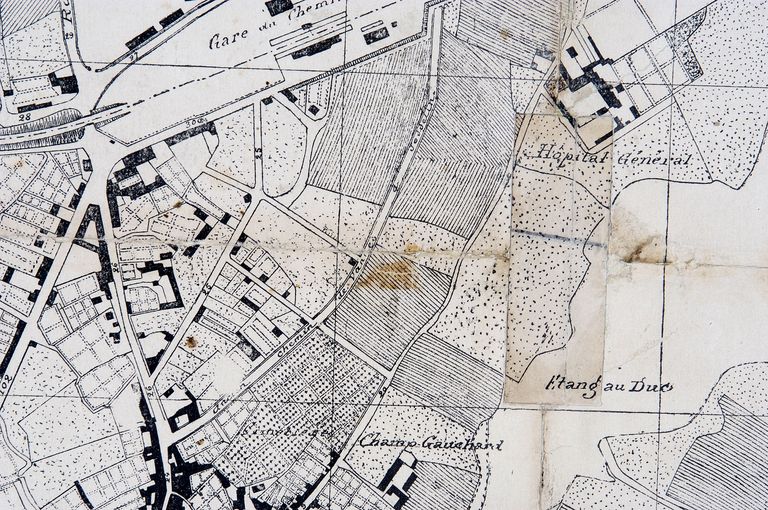 Plan de la ville de Vannes et de ses environs, par Léchard, 1897. Détail. AM, Vannes, 9 Fi.Immatriculation