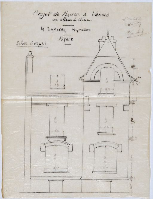 Elévation de la maison Lambert par Michel, 1911. AM Vannes 5I162.Immatriculation