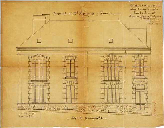 Elévation de la propriété de Melle Guinard par Richard, 1911. AM Vannes 5I162.Immatriculation