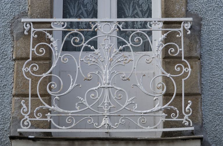 Elévation antérieure, balcon du 1er étage.Immatriculation
