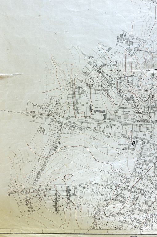 Plan de la ville par Guillerminet, Ministère de la Reconstruction, 1947 : vue générale du quartier de la Madeleine. AM Vannes 9Fi.Immatriculation