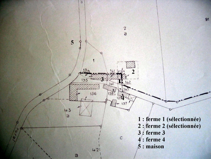 Plan de localistaion des maisons et fermes recensées. Extrait du plan cadastral 1987Immatriculation