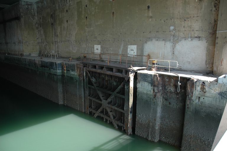Vue de l'intérieur de l'avéole du slipway, l'une des deux portes étanches du bassin (2005)Immatriculation