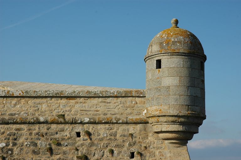 Vue de la citadelle de Port-Louis : échauguette couronnant la demi-luneImmatriculation