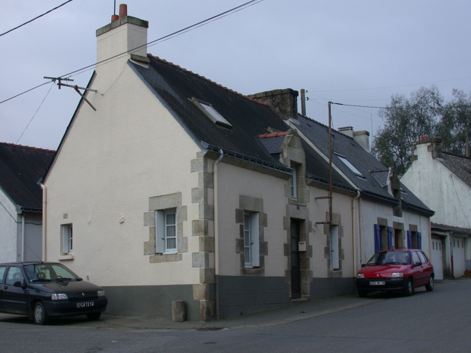 N°30 et 28. Maison d'angle et maison en alignement enduites à deux pièces symétriques. Fin 19e siècle ; élévation sur la place. Section AH, parcelles 469 et 470.Immatriculation